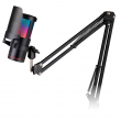 | Características | - Iluminación - Corriente: 120mA - Voltaje: 5V - Cable con recubrimiento de goma - Botón mute - Impedancia: 2.2kΩ - Conector: USB (Micrófono) / Jack 3.5mm (Auriculares) - Longitud cable: 1.7m - SNR: 85dB - Sensibilidad: 45dB±3dB - SPL: 120dB - Rango de frecuencia: 20Hz-20kHz - Frecuencia de muestreo: 48-192KHz - Tasa de bit: 24-bit - Brazo Micrófono Compatibilidad - Mac - PS4 - PS5 - Switch - Windows Dimensiones y peso - 141x52x80mm (micrófono) / 740mm (brazo) - 332g (soporte) / 130g (micrófono) |