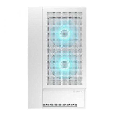 Caja gaming Cougar OMNYX Blanca con cristal templado, excelente ventilación y amplio espacio para hardware de alto rendimiento.