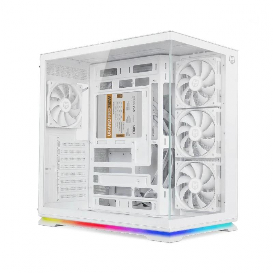 | Otras características | - Fuente de alimentación compatible: ATX (no incluida) - Longitud máxima GPU: 420 mm - Altura máxima disipador CPU: 165 mm - Longitud máxima PSU: 190 mm - Espacio gestión de cableado: 96 mm Material - Chasis de acero SPCC 0,7 mm - Frontal de cristal templado - Lateral de cristal templado Expansion - 8 x ranuras de expansión Diseño - Compatible con placas base ATX / Micro-ATX / ITX - Frontal y lateral de cristal templado frameless - Tira LED ARGB en la parte inferior - Filtro antipolvo magnético superior - Espacio para hasta 10 ventiladores Puertos - 1 x USB 3.0 - 1 x USB 2.0 - 1 x USB Tipo C - 1 x HD Audio - 1 x Mic Sistema Ventilación - Ventiladores incluidos en placa base: 3 x 120 mm PWM - Ventilador incluido trasero: 1 x 120 mm PWM - Soporte superior: 3 x 120 mm / 2 x 140 mm - Soporte zona PSU: 3 x 120 mm - Soporte refrigeración líquida superior: 120 mm / 240 mm / 280 mm / 360 mm - Soporte refrigeración líquida trasera: 120 mm - Soporte refrigeración líquida en placa base: 120 mm / 240 mm / 360 mm Dimensiones y peso - 280 x 445 x 442 mm - 5,7 kg |