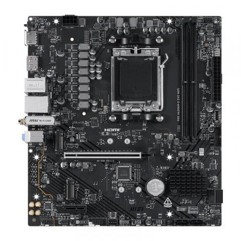 | Puertos E/S, Conectores | Internos - Conector ATX_PWR - Conector CPU_PWR - 1 x conector ventilador CPU - 2 x conectores ventilador sistema - 2 x conectores panel frontal - Conector intrusión chasis - Conector audio frontal - Conector COM - 3 x conectores ARGB Gen2 - 1 x conector RGB - Conector TPM 2.0 - 4 x USB 2.0 - 2 x USB 5Gbps Tipo A - 1 x USB 5Gbps Tipo C Traseros - 4 x USB 5Gbps Tipo A - 2 x USB 2.0 - 1 x HDMI - 1 x DisplayPort - 1 x RJ-45 2.5G - Conectores Wi?Fi / Bluetooth - Conectores de audio - Botón Clear CMOS - Botón Flash BIOS |