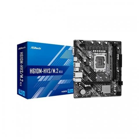 La **ASRock H610M-HVS/M.2** es una placa base compacta en formato micro ATX diseñada para sacar el máximo partido a los procesadores **Intel Core de 12ª y 13ª generación**. Ideal para **montajes eficientes y de bajo coste**, esta placa combina conectividad actual, soporte para almacenamiento M.2 y compatibilidad con memorias DDR4 hasta 64 GB. Perfecta para equipos de oficina, uso doméstico o gaming moderado, ofrece estabilidad, fiabilidad y una buena base para configuraciones modernas.