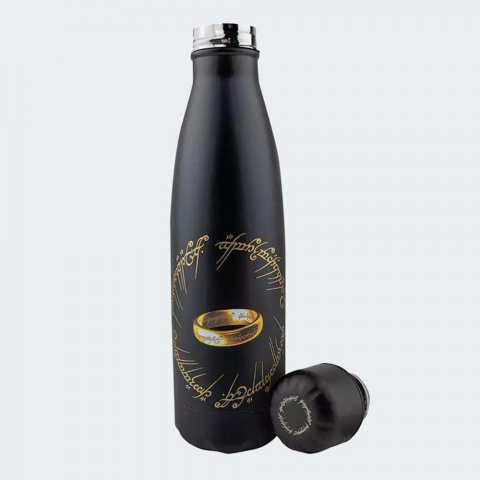 Botella de estilo elegante, sobrio y llamativo, con una estética inspirada en El Señor de los Anillos. Su diseño en negro con detalles en colores ardientes la convierte en una pieza visualmente impactante para cualquier fan de la saga. Ideal tanto para el día a día como para aventuras más épicas.