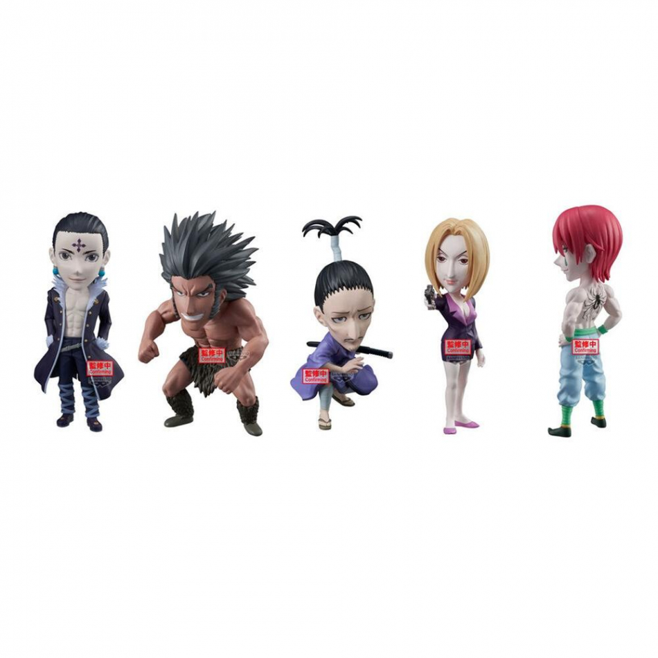 Figura coleccionable de 9 cm de altura basada en los personajes de la organización The Phantom Troupe, del popular anime y manga Hunter x Hunter. Forma parte de la serie World Collectable, ideal para fans y coleccionistas de la franquicia.