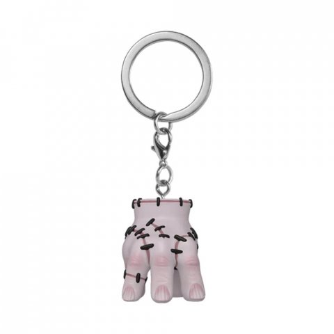 Basado en el personaje **Thing** tal como aparece en la serie **Wednesday**, este llavero captura todos los detalles característicos con el inconfundible estilo de Funko POP!. Su tamaño compacto lo hace ideal tanto para usarlo como accesorio diario como para exhibirlo en tu colección.