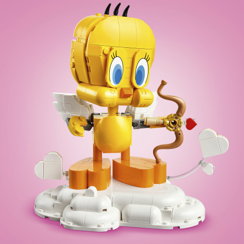 Piolín , en una versión adorable tematizada para San Valentín. Con sus alas, arco de Cupido y accesorios intercambiables, es una opción perfecta para regalar o decorar con un toque de nostalgia y ternura. Diseñado para fans de LEGO, coleccionistas y entusiastas de la animación clásica.