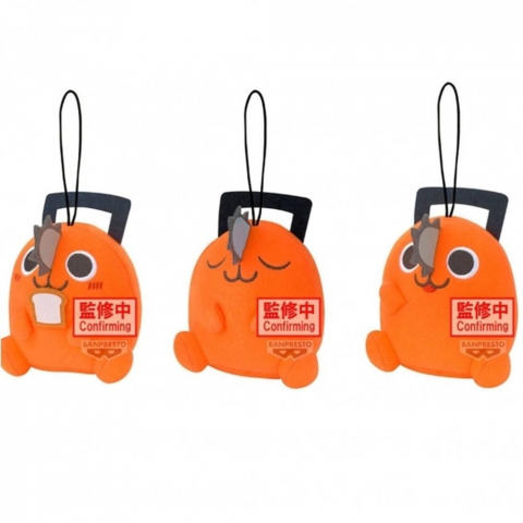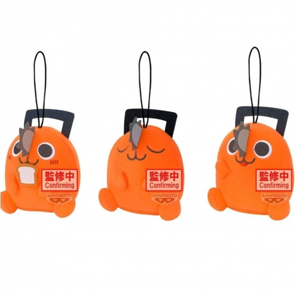 Peluche de Pochita en posición sentada, con detalles cuidados que capturan fielmente su aspecto entrañable en la serie. Su estilo chibi lo hace aún más adorable y reconocible.