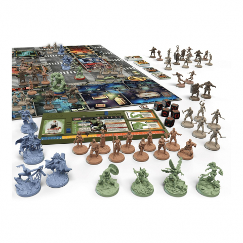 87 miniaturas - 6 peanas de colores - 6 paneles de control - 12 cubos indicadores - 6 dados - 9 módulos de tablero de doble cara - 12 tarjetas de identificación - 128 minicartas - 41 fichas - 1 reglamento.