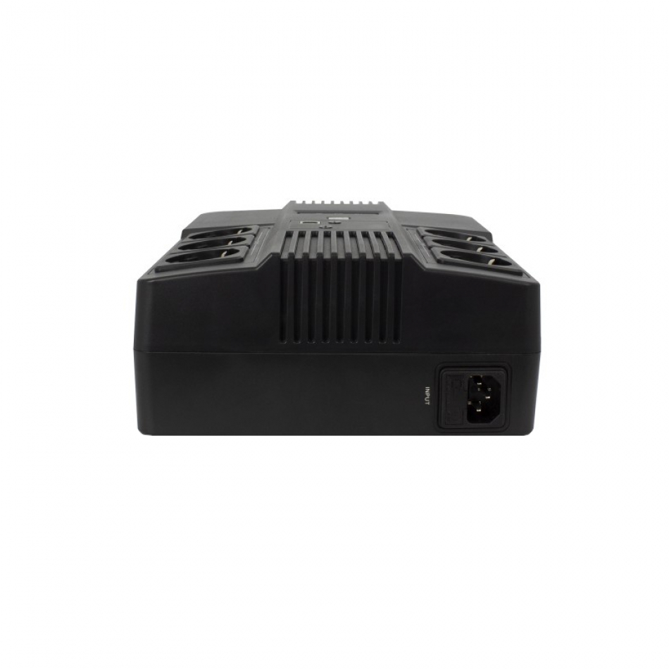 | Caracteristicas | - Potencia de salida: 600 VA / 360 W - Entrada: 230 V ~ 50/60 Hz - Salida: 230 V ~ 50/60 Hz - Tecnología: Línea Interactiva. - Forma de onda: onda sinusoidal simulada - Estabilización de tensión: AVR (regulación automática de tensión) - Batería: 1 x 12 V / 7 Ah - Tiempo de respaldo: Aprox. 10 minutos para carga de @ 120 W - Tiempo de transferencia: menos de 2-6 milisegundos - Enchufe de entrada: 1x IEC C14 - Enchufe de salida: 6x conector hembra tipo F - Función de alarma: falla de CA, batería baja, sobrecarga, falla - Protección: protección contra cortocircuitos, sobrecarga de descarga y protección contra sobrecargas. - Protección contra sobretensiones: 125 julios. - Panel de control: LED - Anclaje de pared: Sí - Peso: 4,5 Kg. - Dimensiones: 360 x 240 x 130 mm - Uso de energía autónomo: 9,5 W - Equipado con: cable de alimentación, 1x fusible de repuesto - Ambiente: 0-90% HR a 0-40 ° C (sin condensación) - Color: Negro - Batería reemplazable: Sí |