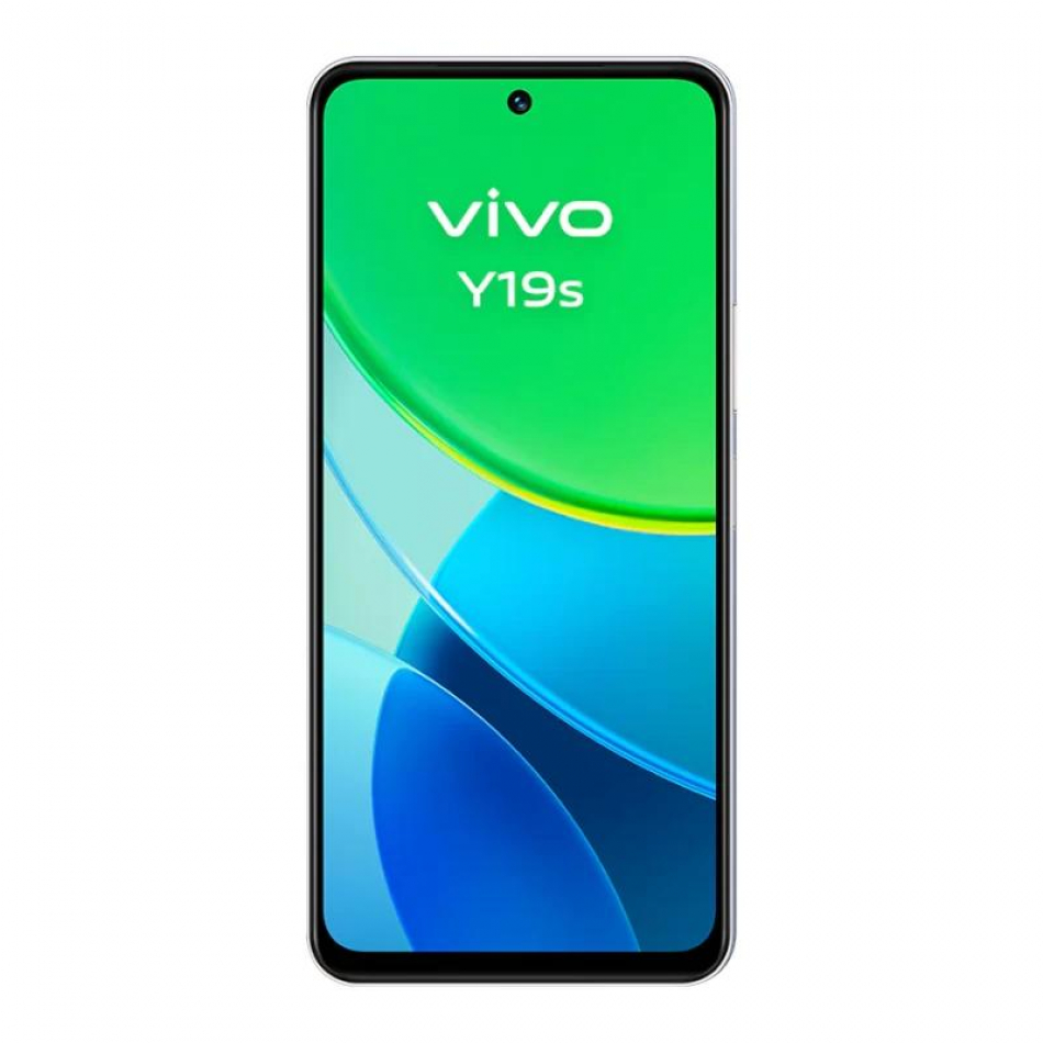 Vivo Y19s con pantalla de 6.68", 6GB+6GB RAM, 128GB de almacenamiento y color Silver. Incluye cargador rápido de 44W.